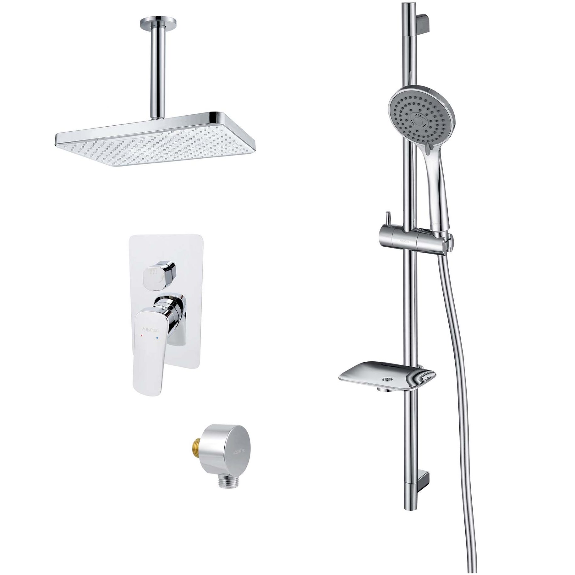 Смеситель для душа (внешняя и скрытая часть). Душевой гарнитур 3jet. Верхний душ потолочный. Шланговое подсоединение.