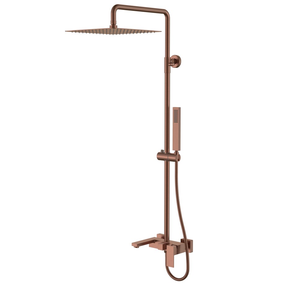 Душевая система настенного монтажа с тропическим душем, ручной лейкой и изливом.