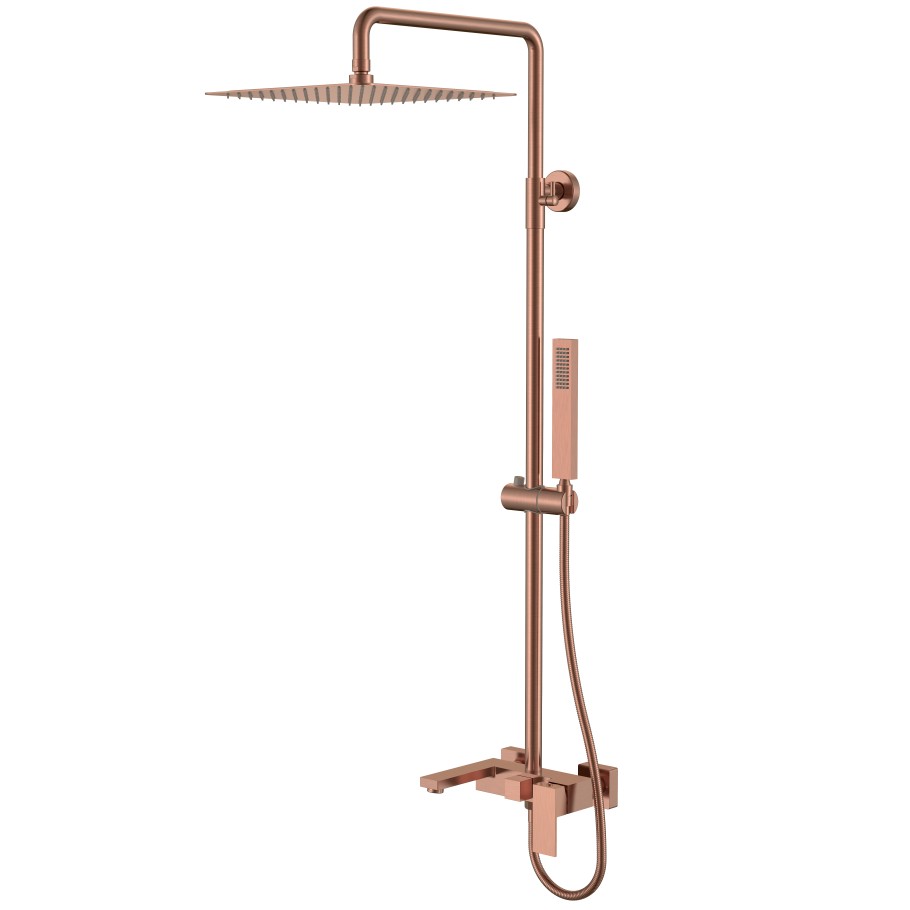 Душевая система настенного монтажа с тропическим душем, ручной лейкой и изливом.