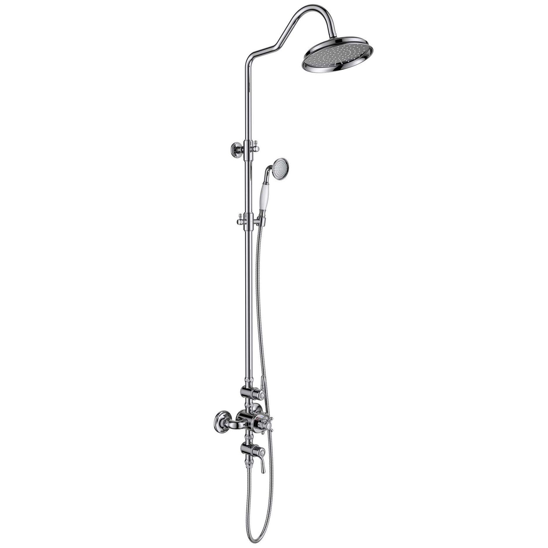 Продуманная функциональность системы. Двухрычажная система регулировки силы струи и температуры воды. Обеспечивает комфортную подачу воды заданной температуры и защиту от ожогов при перепадах давления в водопроводной системе. Корпус с защитой от ожогов. Клапан обратного тока воды. Регулируемая душевая штанга из нержавеющей стали, выдвигающаяся до 1529 мм в высоту. Увеличенный диаметр тропического душа. Верхний душ с изменяемым углом. Легкая очистка силиконовых форсунок тропического душа от известкового налета. Высокопрочные материалы. Лаконичный дизайн. Постоянная температура воды и защита от ожогов. Комплект поставки: тропический душ, душевая лейка, рейлинг, душевой шланг из нержавеющей стали, смеситель, S-образные эксцентрики, декоративные отражатели, монтажный комплект.