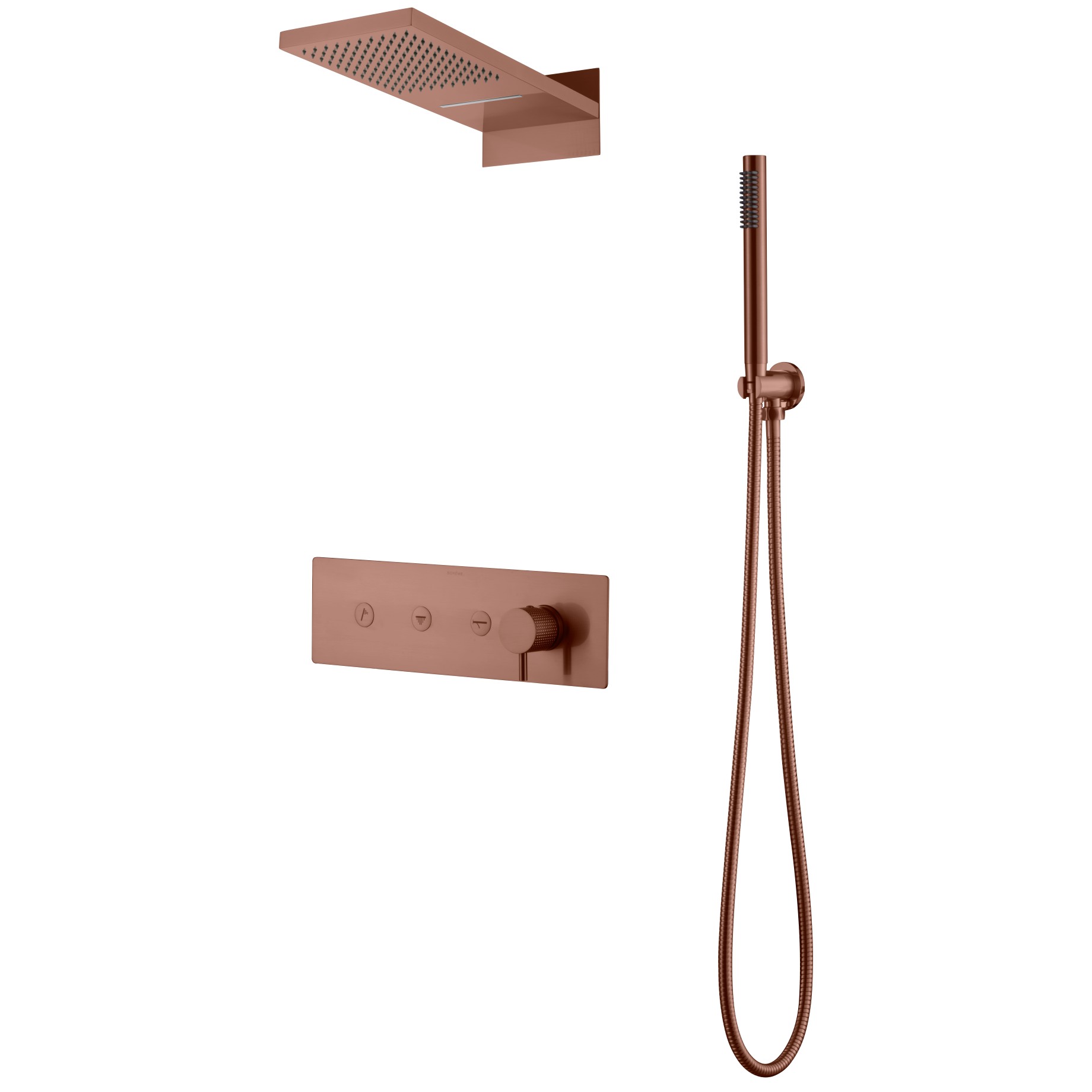 Душевая система скрытого монтажа FUSION - ультраплоский минималистичный дизайн. Инновационное управление режимами. Форсунки Anticalc. В комплекте: смеситель, монтажная коробка, ручной душ, верхний душ.