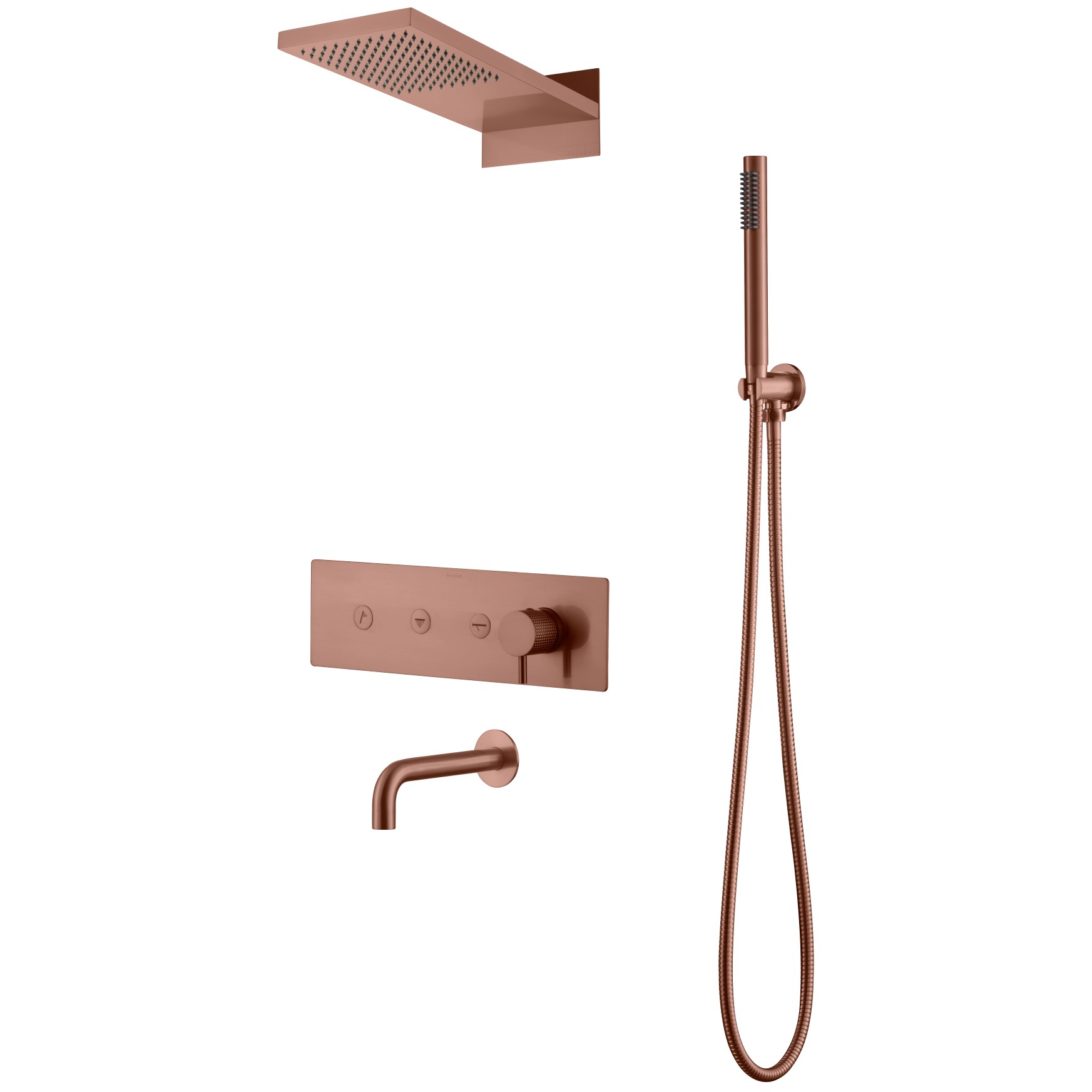 Душевая система скрытого монтажа FUSION - ультраплоский минималистичный дизайн. Инновационное управление режимами. Форсунки Anticalc. В комплекте: смеситель, монтажная коробка, ручной душ, верхний душ, излив.