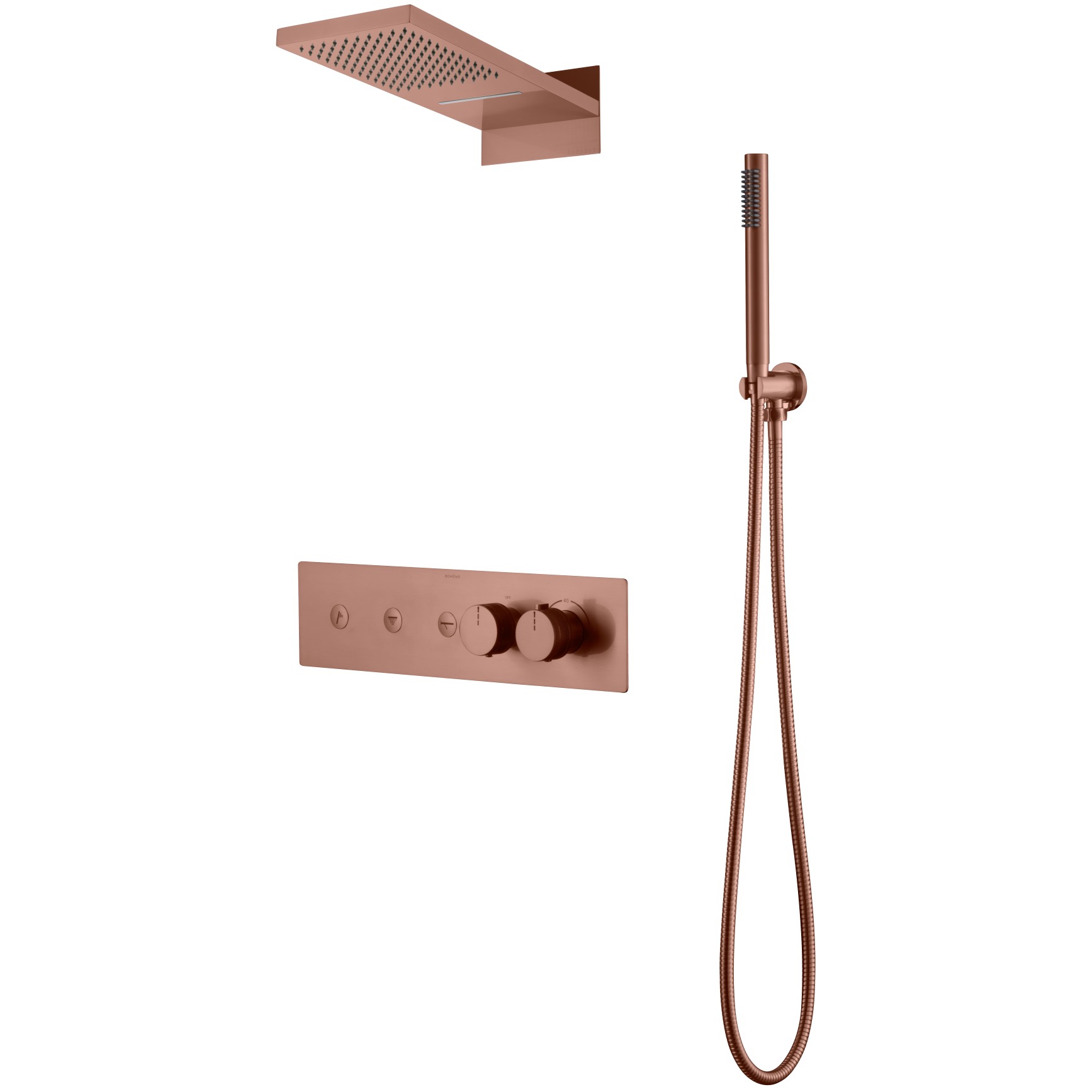 Душевая система скрытого монтажа FUSION - ультраплоский минималистичный дизайн. Инновационное управление режимами. Форсунки Anticalc. В комплекте: термостатический смеситель, монтажная коробка, ручной душ, верхний душ.