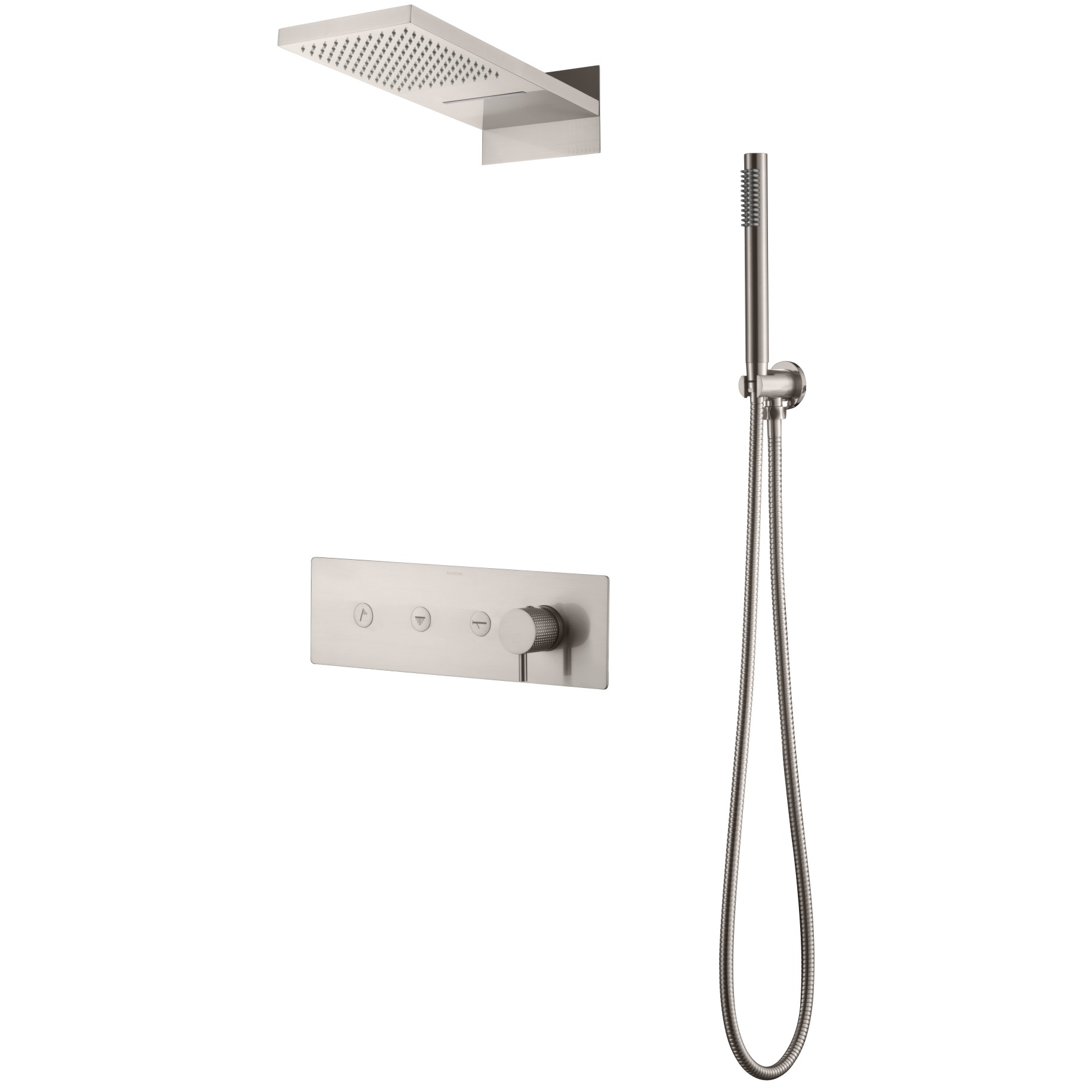 Душевая система скрытого монтажа FUSION - ультраплоский минималистичный дизайн. Инновационное управление режимами. Форсунки Anticalc. В комплекте: смеситель, монтажная коробка, ручной душ, верхний душ.