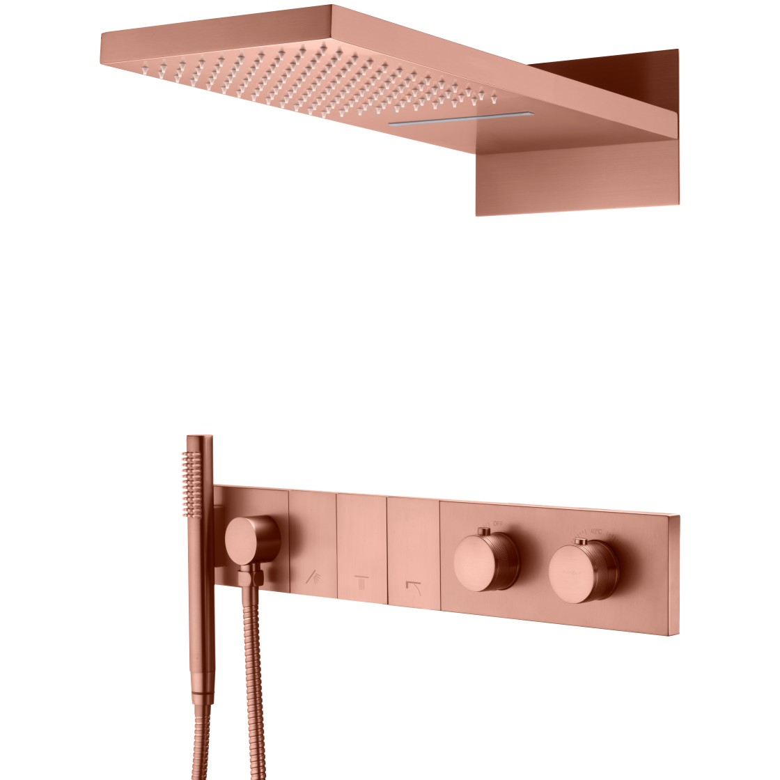 Ультра плоский дизайн, инновационное управление режимами позволит создать идеальный комфорт. Верхний душ размером 550x230 мм с функцией тропического душа и водопада. Форсунки Soft-Silicone с функцией антикальк и комфортной очисткой. Магнитный держатель лейки. Каскадный излив как дополнительная опция. Картридж Sedal, переключатели Neoperl, термостат Vernet (Франция).
