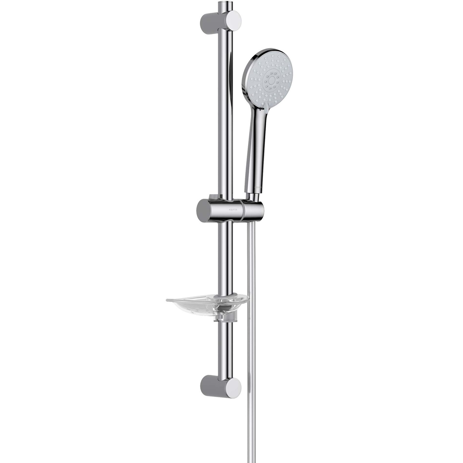Душевая штанга. Держатель душевой лейки. Душевая лейка. Душевой шланг. Мыльница. Монтажный комплект.