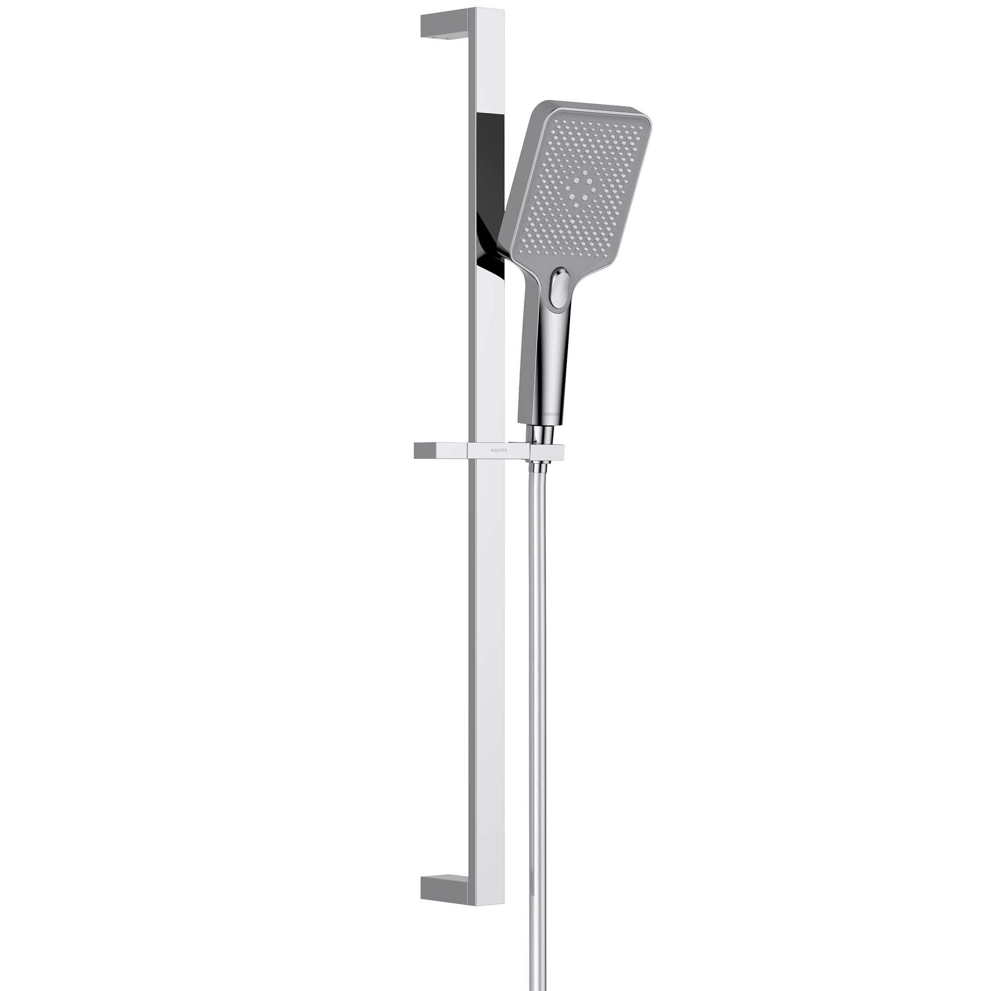Основной материал: нержавеющая сталь. Материал шланга: поливинилхлорид (ПВХ). Материал стойки: нержавеющая сталь. Материал лейки: ABS-пластик. Высота стойки: 70 см. Переключение режимов лейки: кнопочное. Количество режимов лейки: 3. Длина шланга: 150 см. Размер ручной лейки: 25,7х6,4х11,3 см. Особенности душевого гарнитура: передвижной держатель лейки, 3-х режимная душевая лейка, увеличенный диаметр лейки, оптимальная длина шланга. высококачественные материалы, стойкое покрытие. Комплект поставки: душевая штанга, держатель душевой лейки, душевая лейка, душевой шланг, монтажный комплект.