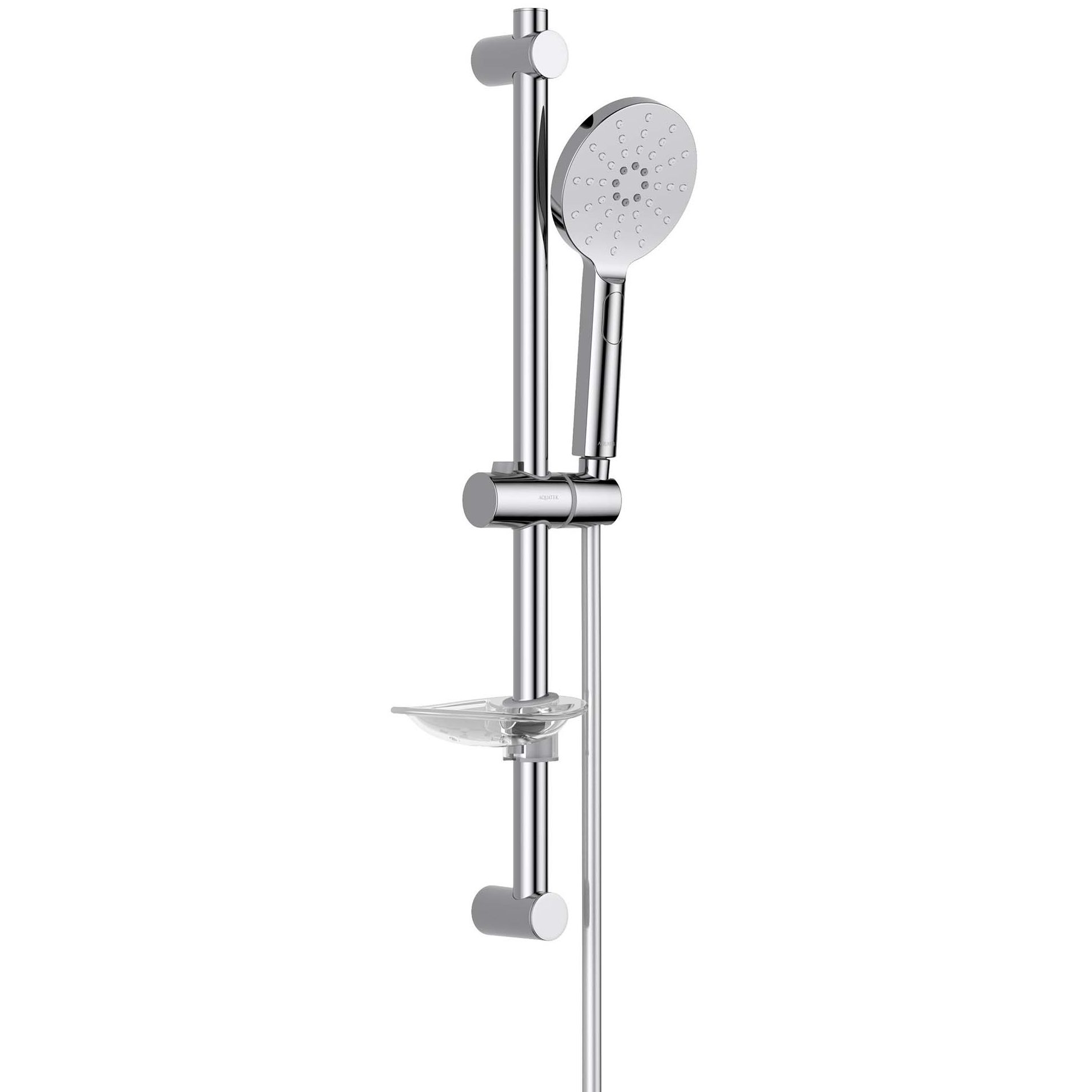 Передвижной держатель лейки. 3-х режимная душевая лейка. Оптимальная длина шланга. Высококачественные материалы. Стойкое покрытие. Комплект поставки: душевая штанга, держатель душевой лейки, душевая лейка, душевой шланг, мыльница, монтажный комплект.
