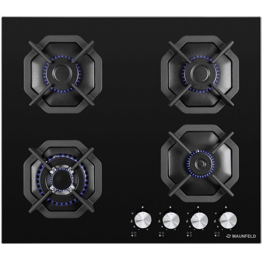 Восьмиугольные чугунные подставки – это запатентованное изобретение MAUNFELD, прочные и долговечные. Сами конфорки спроектированы таким образом, что огонь не перегревает ни чугунные решетки, ни ручки управления.