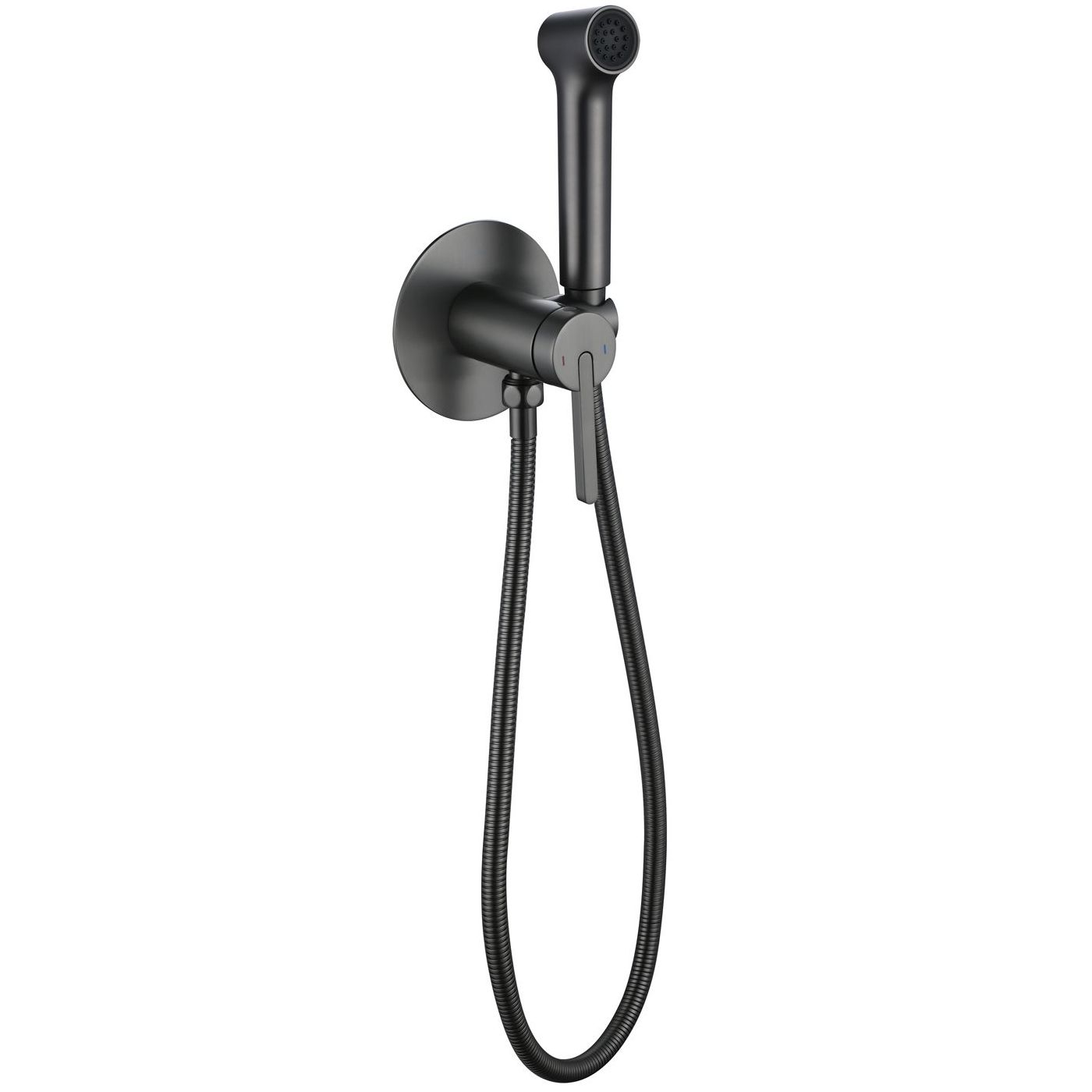 Встраиваемый гигиенический душ с однорычажным управлением. Цвет - оружейная сталь.