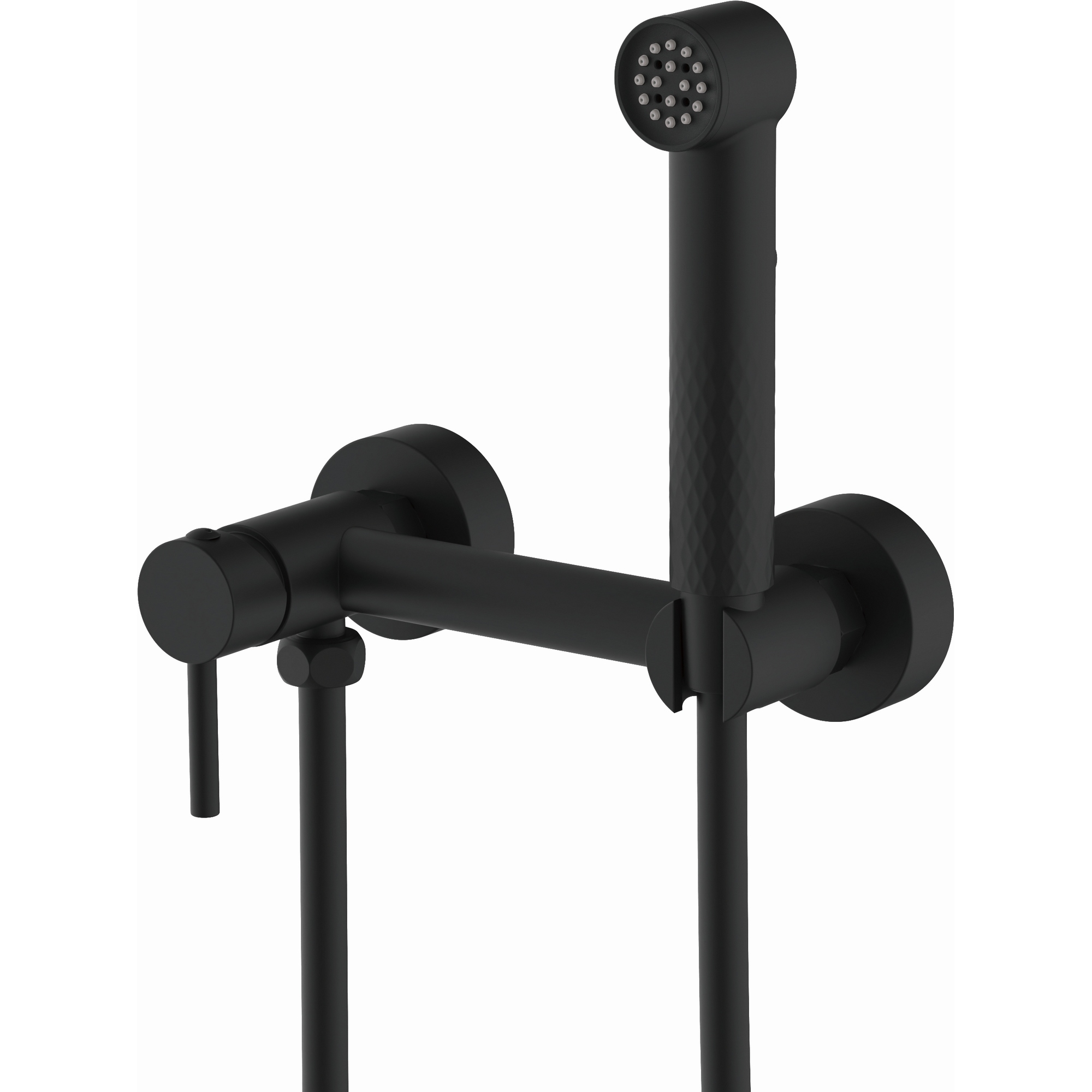 Материал – латунь. Цвет – черный. Керамический картридж. Гигиеническая лейка с клавишей регулировки воды. Взрывозащищенный шланг 1.2 м. Гигиеническая лейка 1 режим.