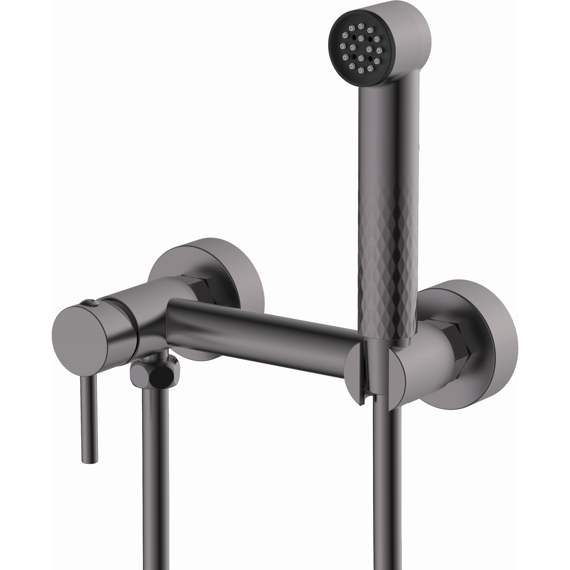 Материал – латунь. Цвет – серый. Керамический картридж. Гигиеническая лейка с клавишей регулировки воды. Взрывозащищенный шланг 1.2 м. Гигиеническая лейка 1 режим.