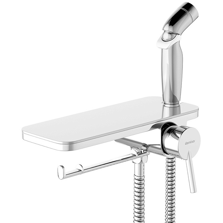 Встраиваемый гигиенический душ со смесителем Damixa Jupiter, полкой, шлангом 1200 мм и держателем для туалетной бумаги. Современное решение для вашего удобства и гигиены теперь в новом исполнении: смеситель с гигиеническим душем отличается простотой и комфортом в использовании, а еще он выглядит невероятно стильно. Материал - латунь, пластик. Цвет - хром. 1 режим гигиенического душа - Spray.