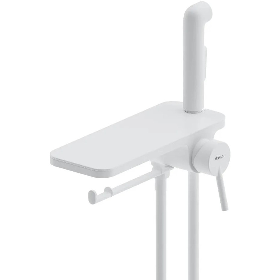 Встраиваемый гигиенический душ со смесителем Damixa Jupiter, полкой, шлангом 1200 мм и держателем для туалетной бумаги. Современное решение для вашего удобства и гигиены теперь в новом исполнении: смеситель с гигиеническим душем отличается простотой и комфортом в использовании, а еще он выглядит невероятно стильно. Материал - латунь, пластик. Цвет - белый матовый. 1 режим гигиенического душа - Spray.