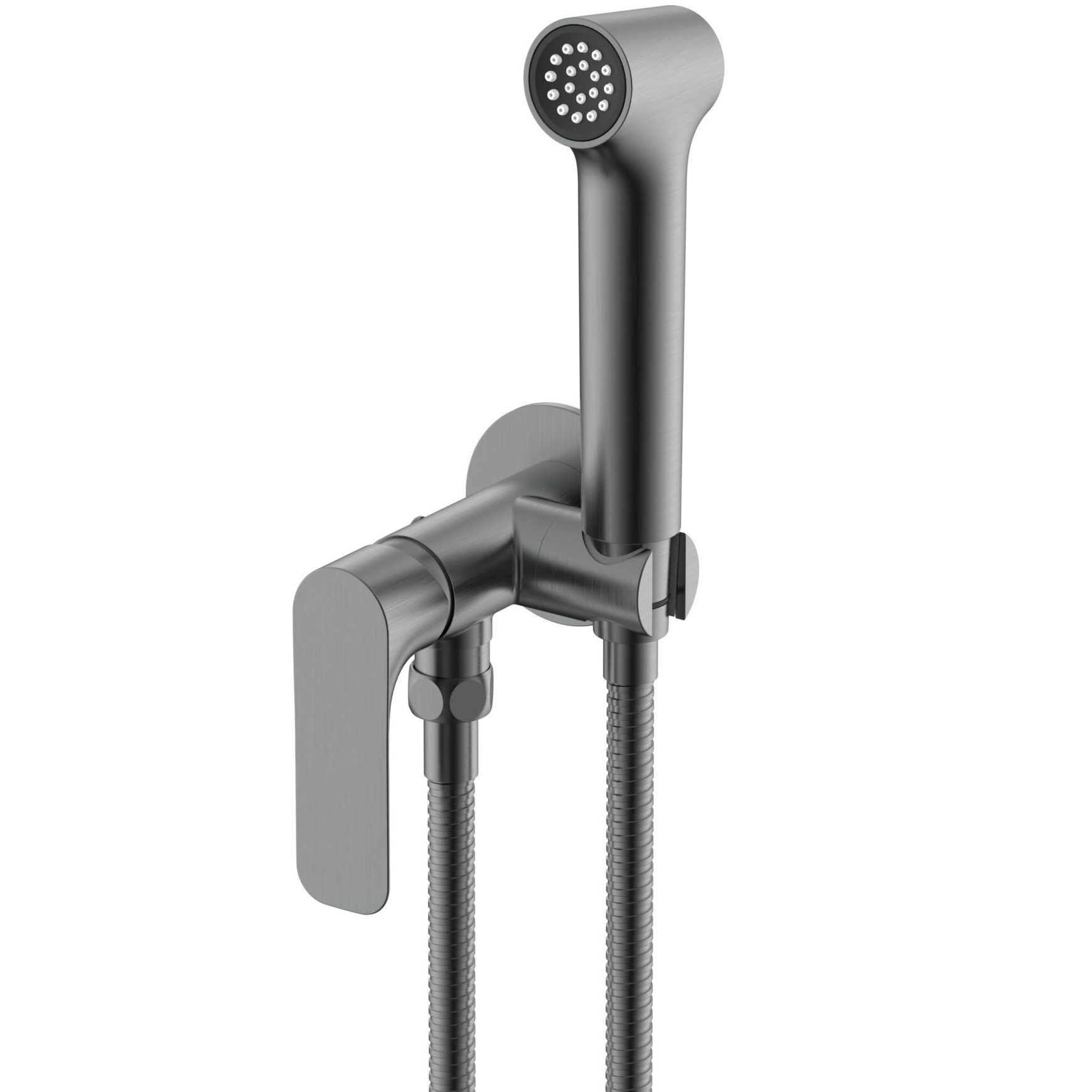 Материал – латунь. Керамический картридж 25 мм. Взрывозащищенный шланг 1.2 м. Гигиеническая лейка с клавишей регулировки воды.