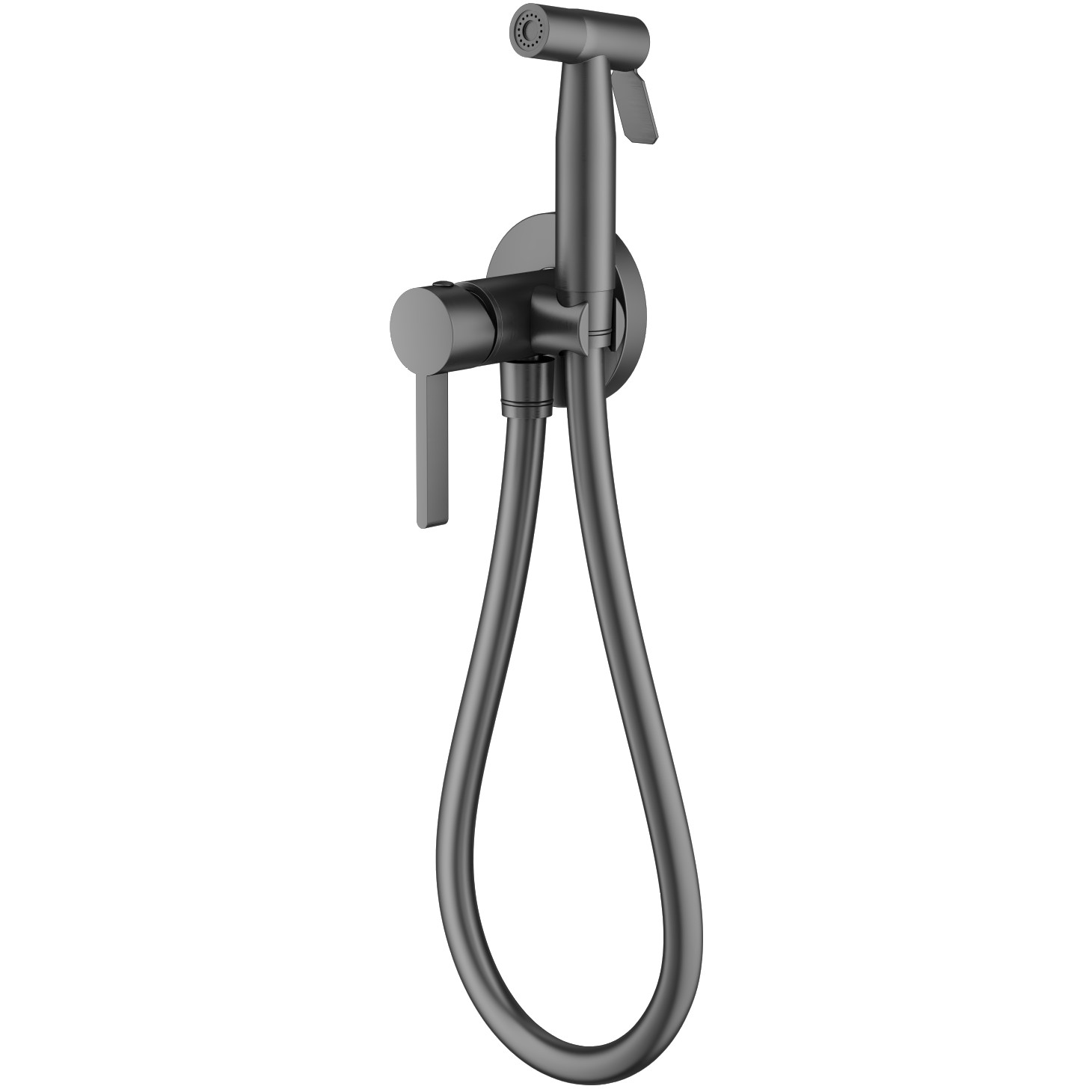 Материал – нержавеющая сталь. Цвет – графит. Керамический картридж. Взрывозащищенный шланг 1.2 м. Гигиеническая лейка 1 режим.