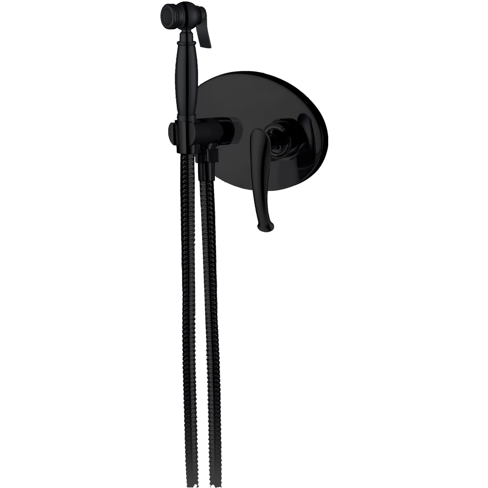 Дополнительные свойства: латунная гигиеническая лейка, керамический картридж. Комплектация: встраиваемая часть, смеситель, штуцер/держатель, гигиеническая лейка, гибкий металлический шланг, декоративная панель.