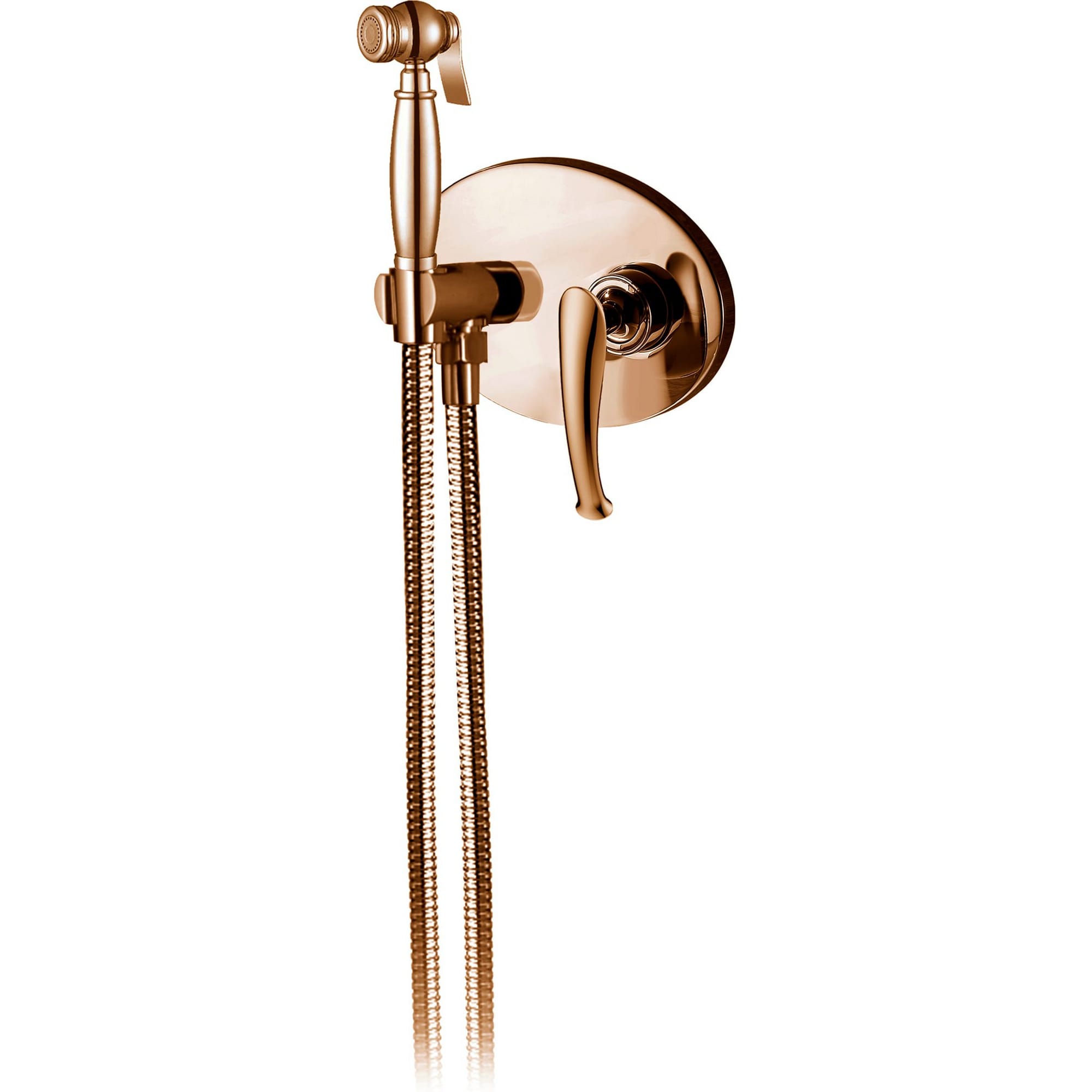 Дополнительные свойства: PVD покрытие, латунная гигиеническая лейка, керамический картридж. Комплектация: встраиваемая часть, смеситель, штуцер/держатель, гигиеническая лейка, гибкий металлический шланг, декоративная панель.