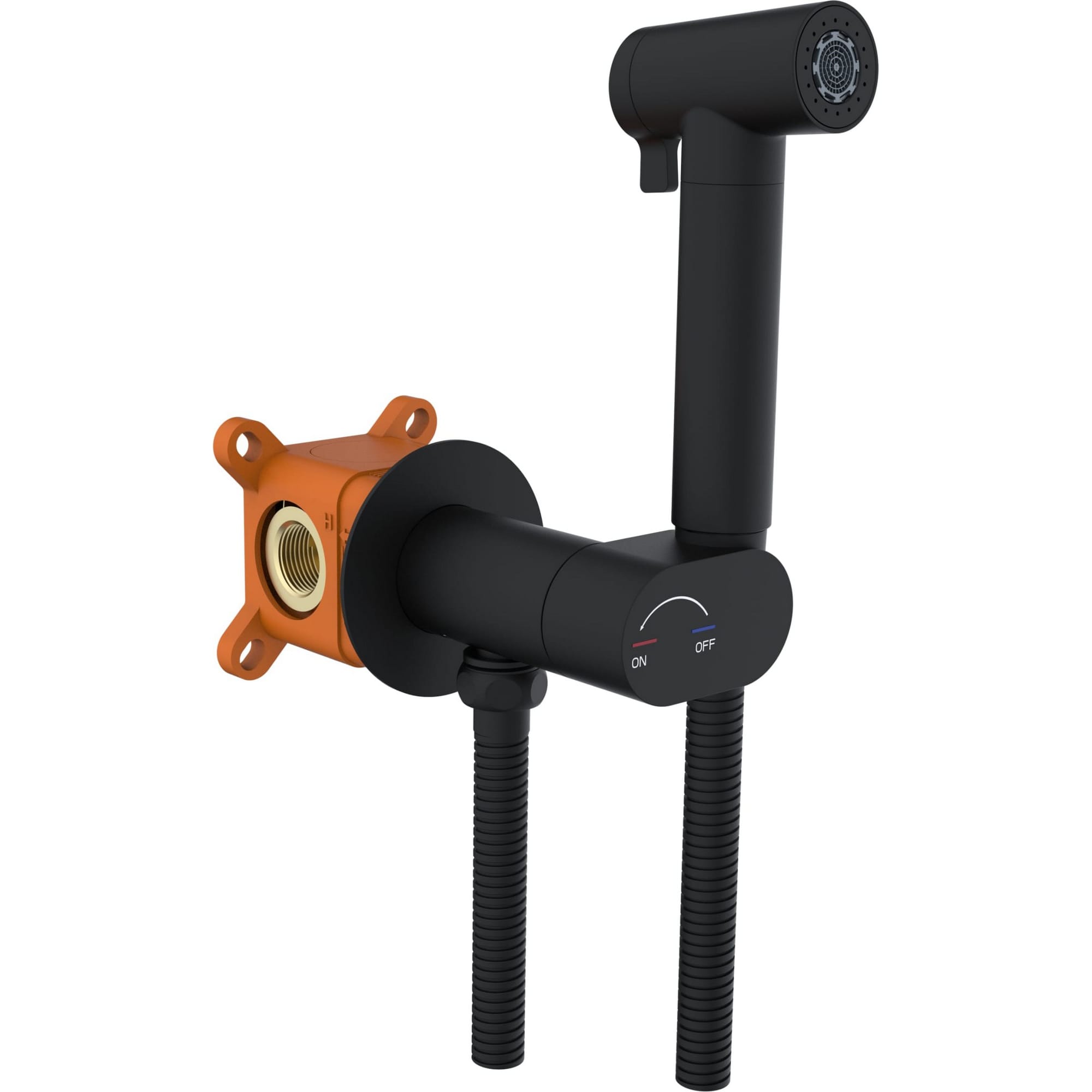 Прогрессивный картридж. В комплекте: встраиваемая часть, смеситель, гигиеническая лейка, гибкий металлический шланг, декоративная панель.
