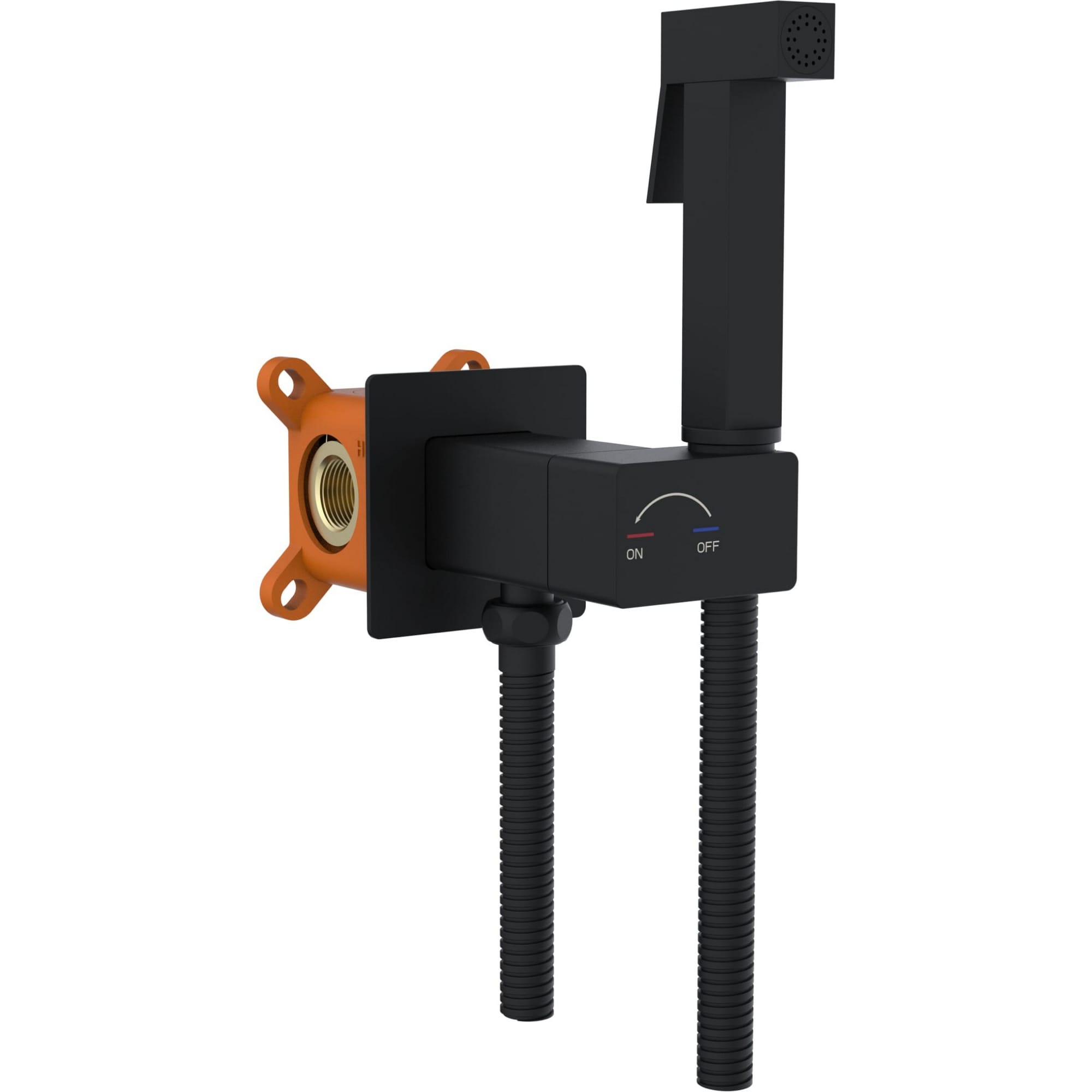 В комплекте: встраиваемая часть, смеситель, гигиеническая лейка, гибкий металлический шланг, декоративная панель.