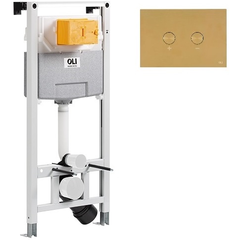 Комплект состоит из: система инсталляции OLI 120 Plus пневматическая 885055, панель смыва Blink золото, металлическая, ультратонкая 883246.