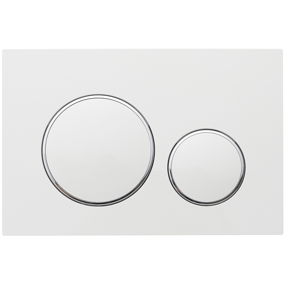 Пластиковая клавиша с двойным смывом. Цвет панели - белый матовый, кайма - хром глянец.