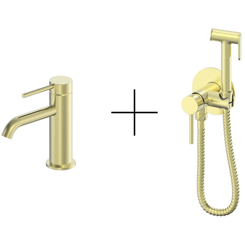 Комплект из гигиенического душа с термостатом и смесителя для умывальника.