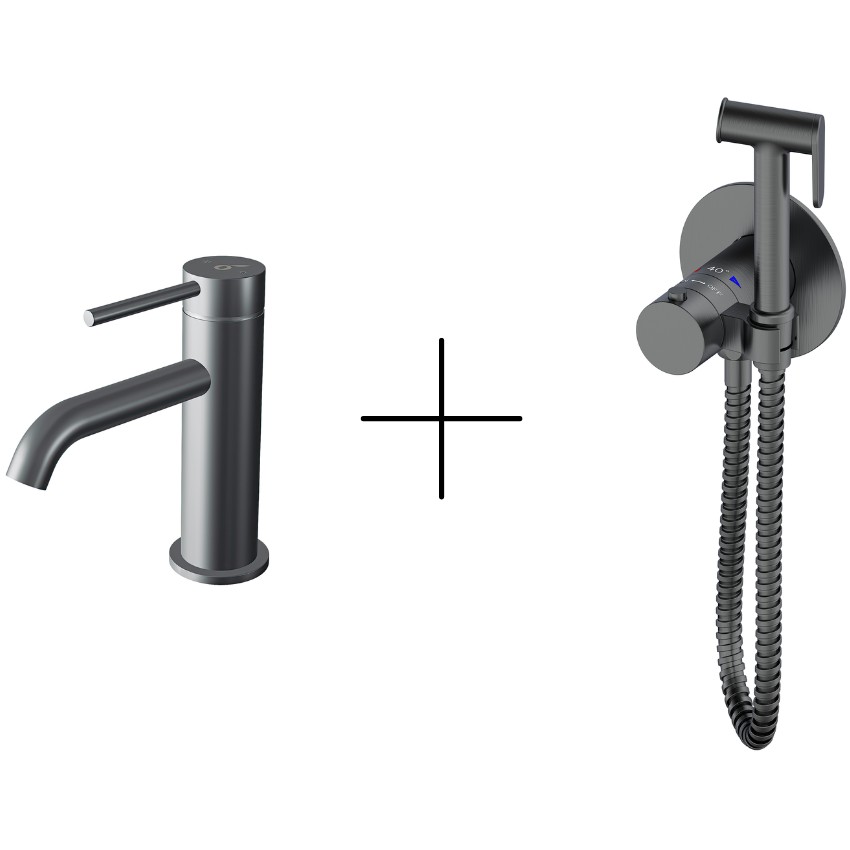 Комплект из гигиенического душа с термостатом и смесителя для умывальника.