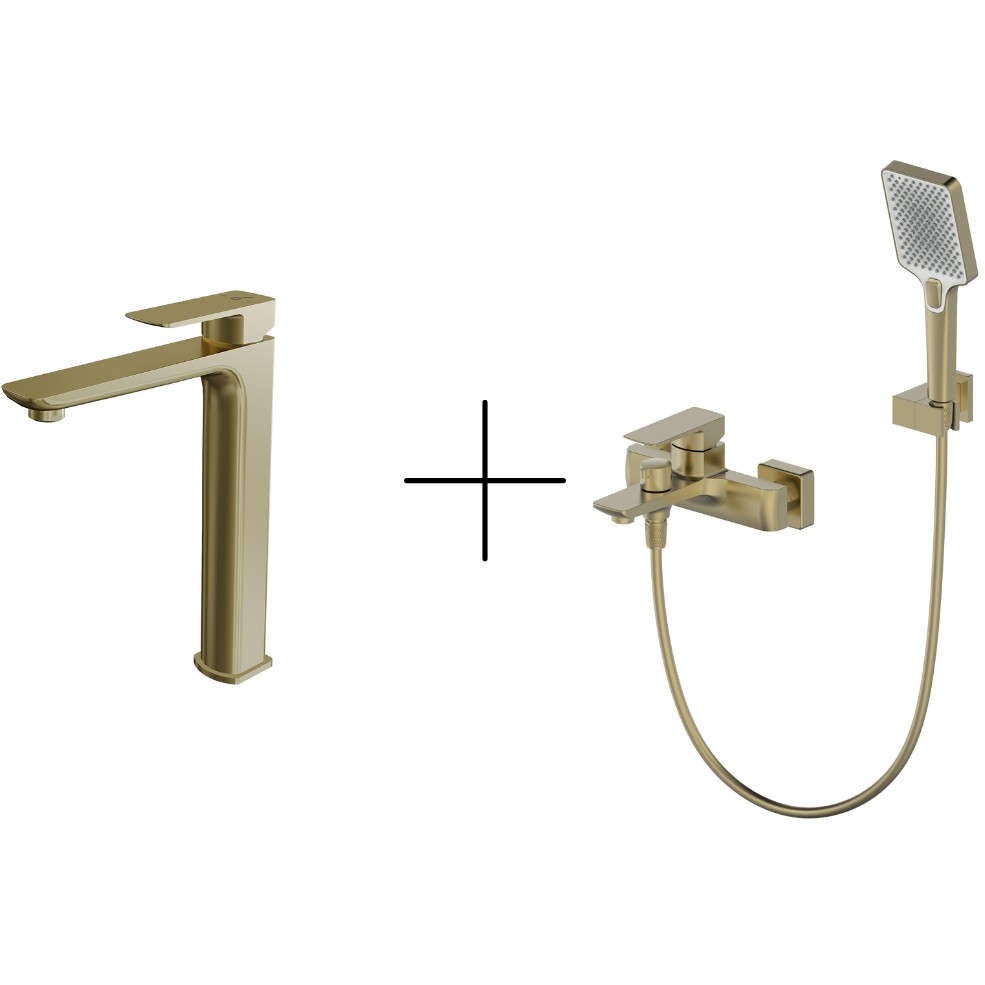 Комплект из смесителя для ванны наружного монтажа и смесителя для умывальника.