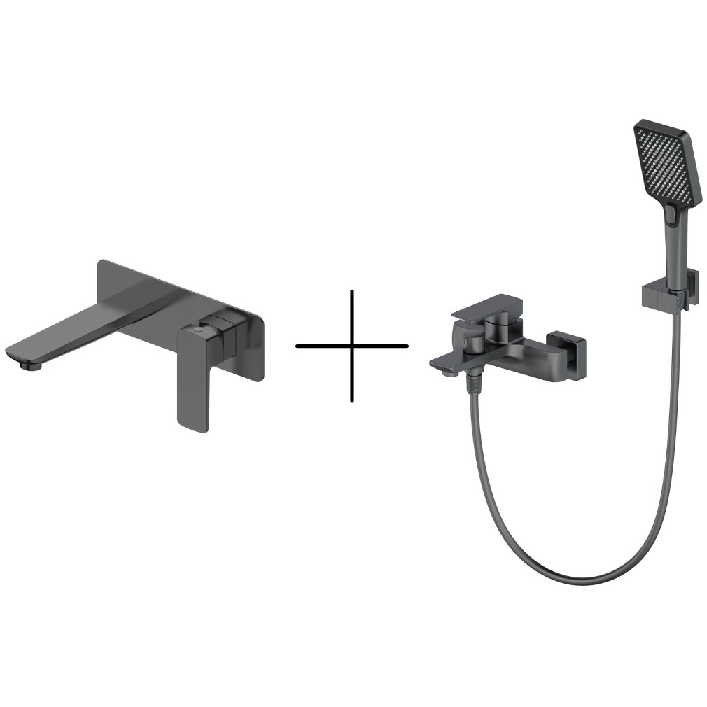Комплект из смесителя для ванны наружного монтажа и встраиваемого смесителя для умывальника.