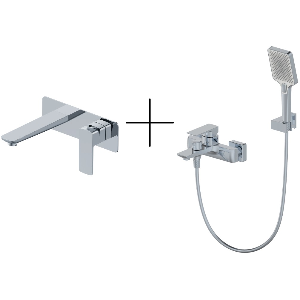 Комплект из смесителя для ванны наружного монтажа и встраиваемого смесителя для умывальника.