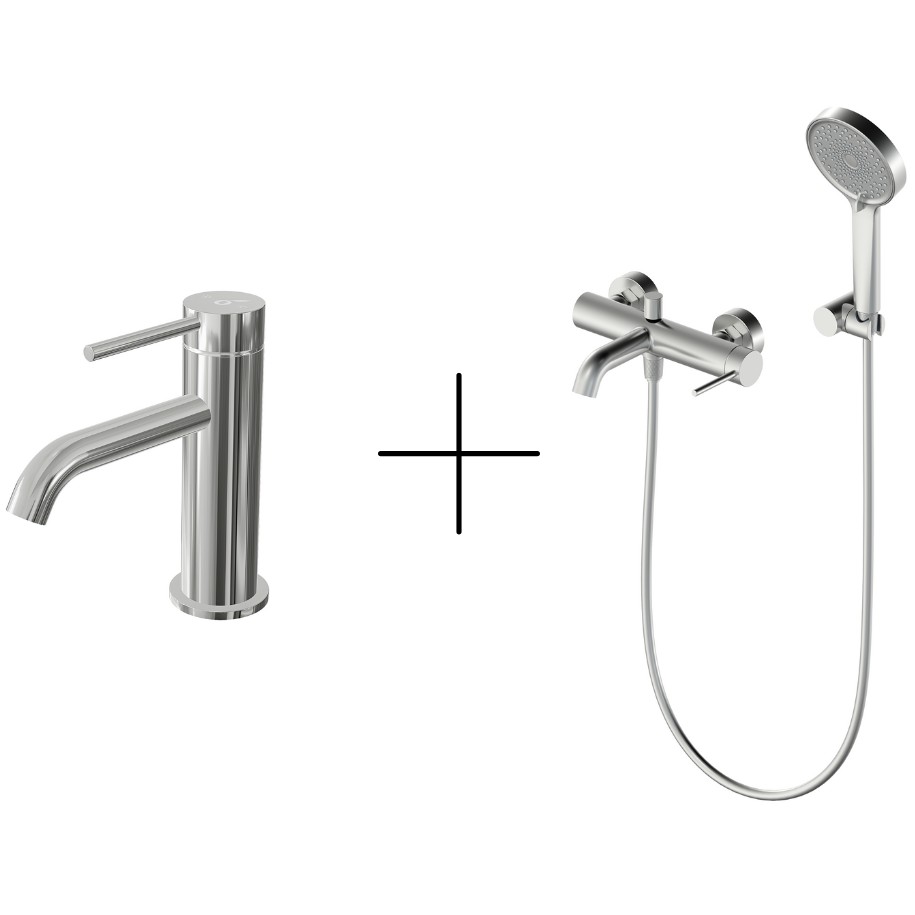 Комплект из смесителя для ванны наружного монтажа и смесителя для умывальника.