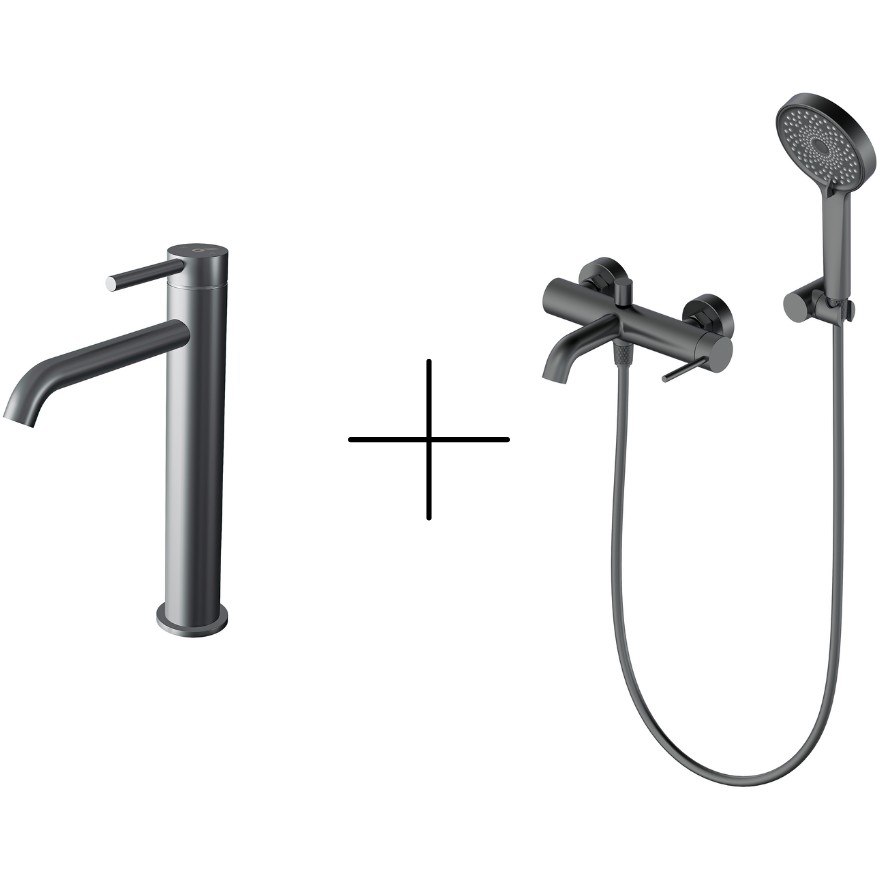 Комплект из смесителя для ванны наружного монтажа и смесителя для умывальника.