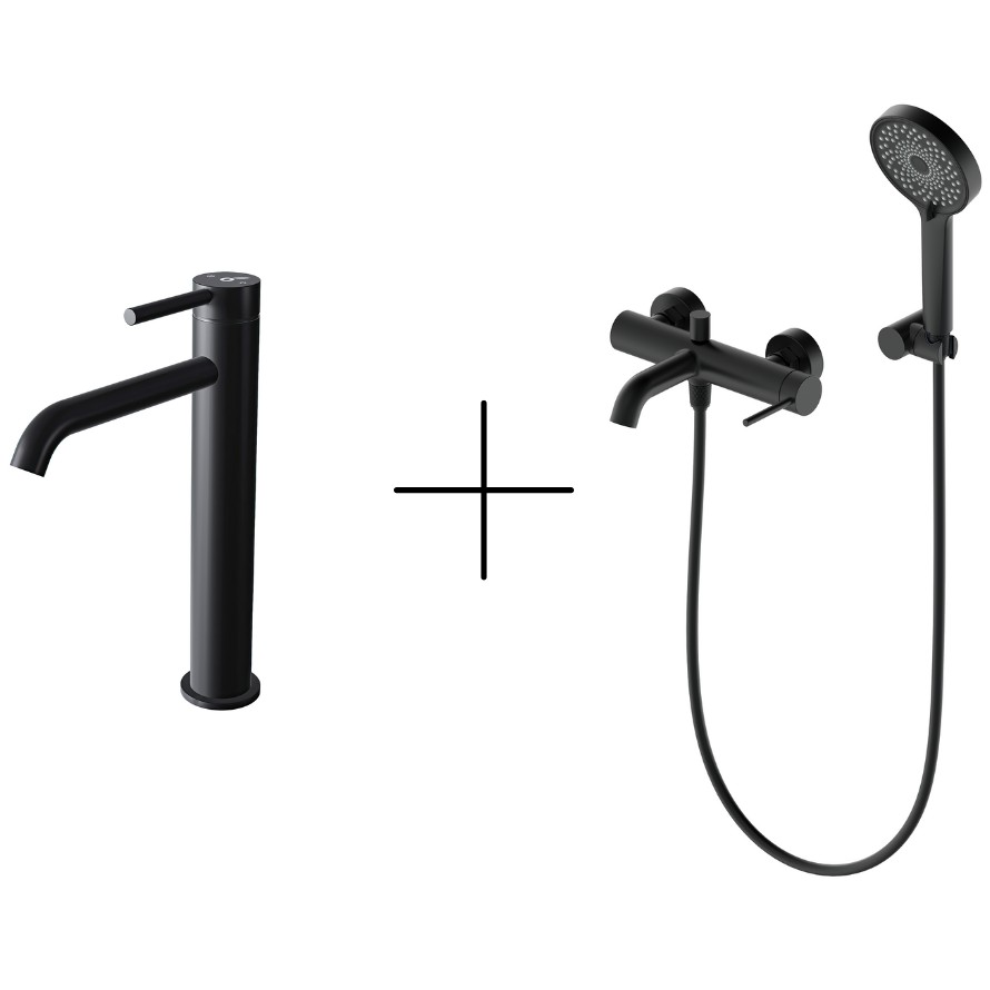 Комплект из смесителя для ванны наружного монтажа и смесителя для умывальника.