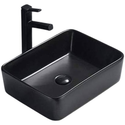 Умывальник для ванной комнаты размером 48x37x13 см. Форма прямоугольная, накладной монтаж, цвет - черный матовый.