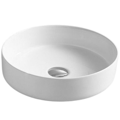 Раковина для ванной в размере 39x39x10,5 см. Форма - круглая, монтаж - накладной.
