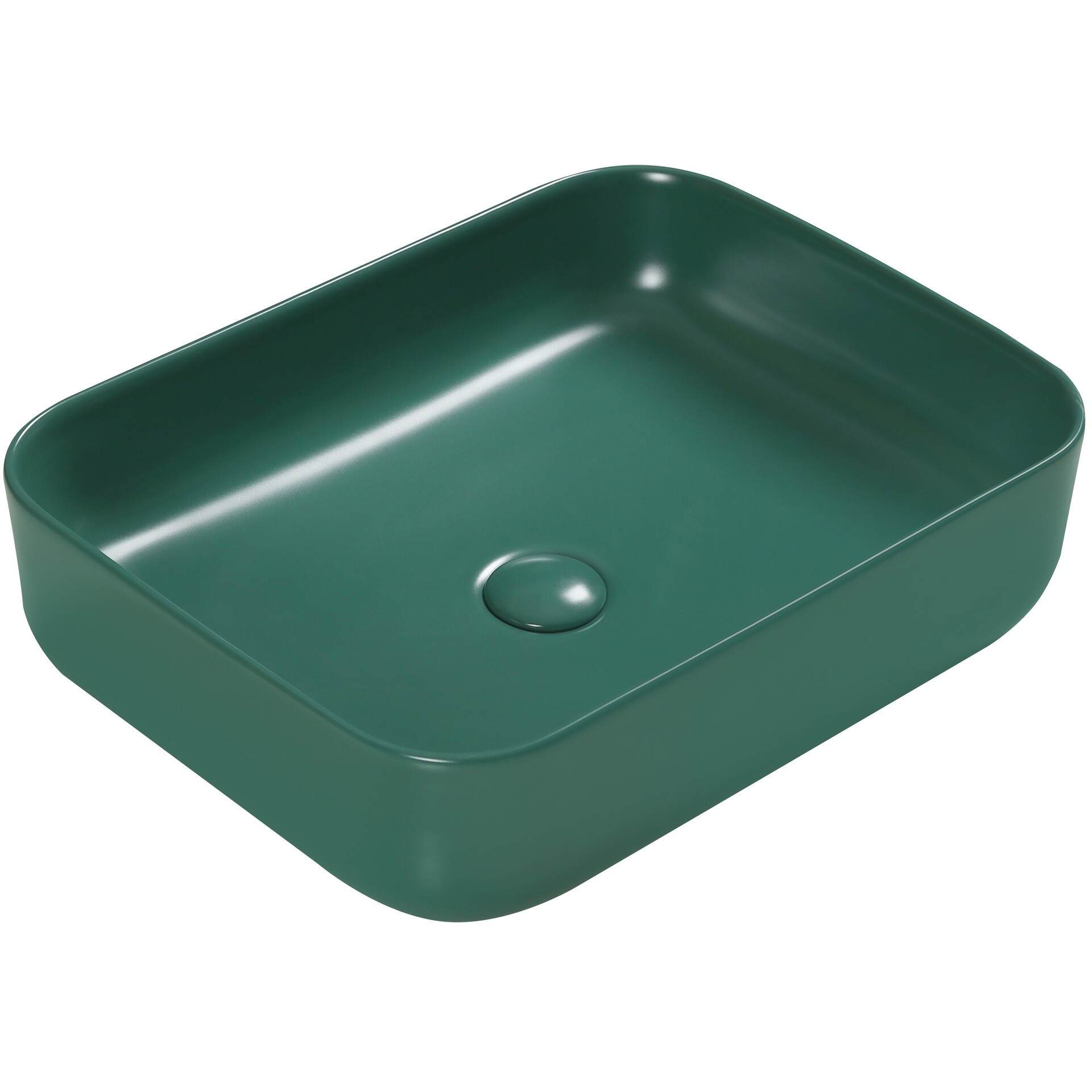 Раковина керамическая зеленая матовая накладная. Размер 50x41x13 см. Донный клапан в комплекте.