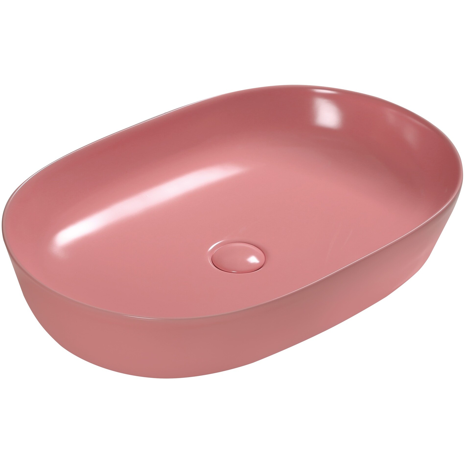 Раковина керамическая, персиковая матовая накладная. Размер 60,5x41,8x13,5 см. Донный клапан в комплекте.