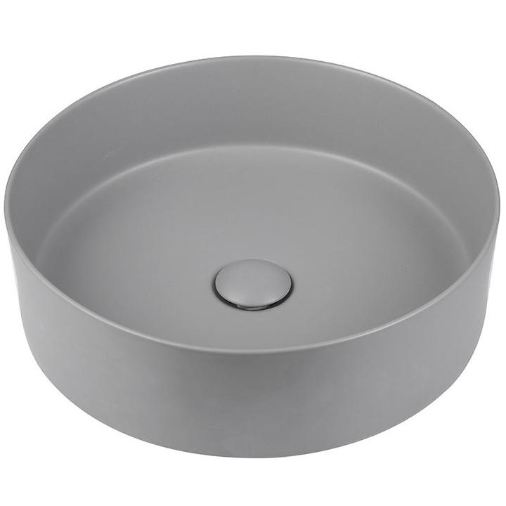 Умывальник для ванной комнаты размером 40x40x12 см. Форма круглая, накладной монтаж, цвет - серый матовый.