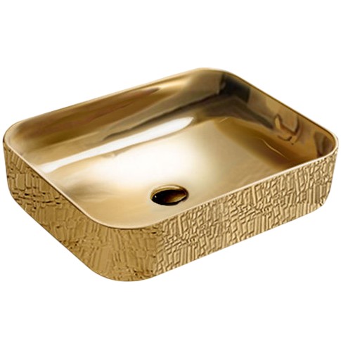 Умывальник для ванной комнаты размером 50x41x13 см. Форма прямоугольная, накладной монтаж, цвет - золото.