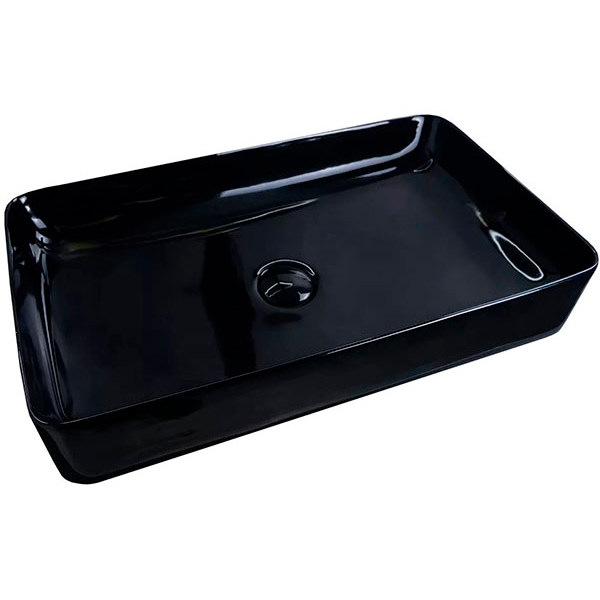 Умывальник для ванной комнаты размером 60x34x11 см. Форма прямоугольная, накладной монтаж, цвет - черный.