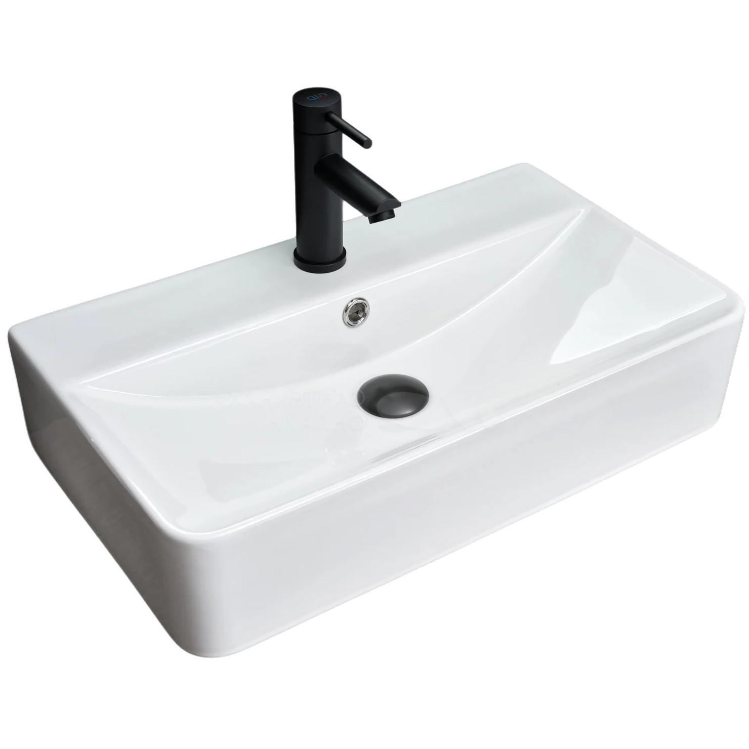 Умывальник для ванной комнаты. Форма прямоугольная, накладной монтаж, цвет - белый глянцевый.