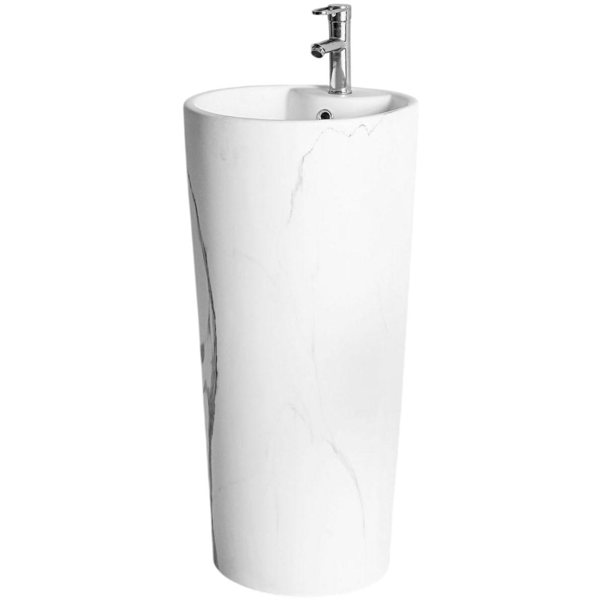 Умывальник для ванной комнаты размером 40x40x84 см. Форма круглая, напольный монтаж, цвет - мрамор белый.