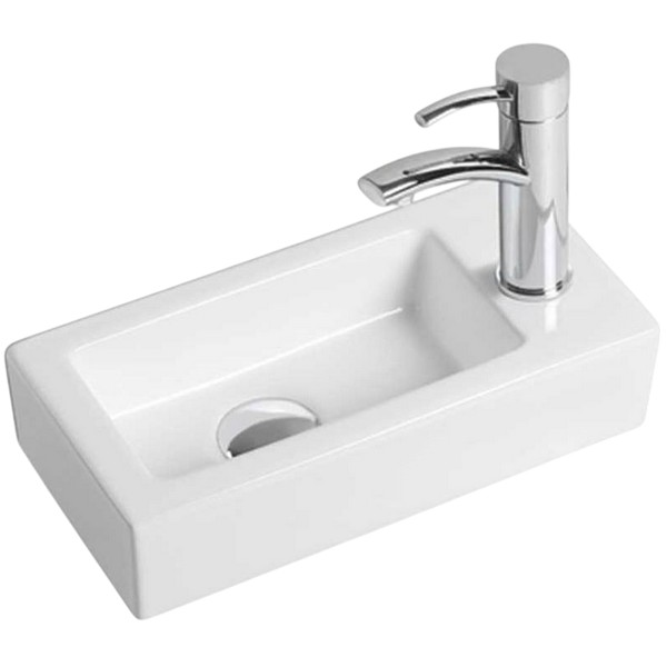 Умывальник для ванной комнаты размером 37x18x9 см. Форма прямоугольная, подвесной монтаж, цвет - белый.