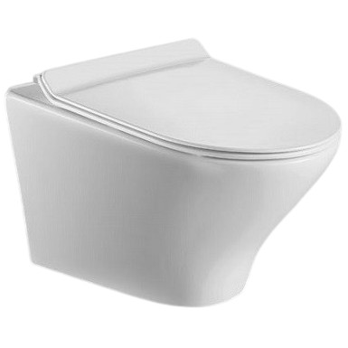Подвесной унитаз с безободковой системой слива, сиденье из дюропласта с плавным опусканием, быстросъемное, металлические накладки, металлический крепеж на петлях.