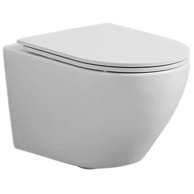 Подвесной унитаз с безободковой системой слива, сиденье из дюропласта с плавным опусканием, быстросъемное, металлические накладки, металлический крепеж на петлях.