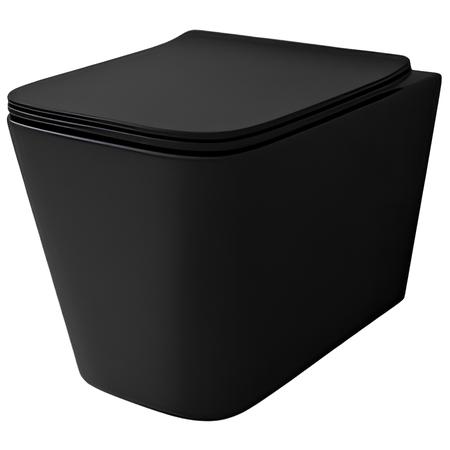 Подвесной унитаз с безободковой системой слива, сиденье из дюропласта с плавным опусканием, быстросъемное, металлические накладки, металлический крепеж на петлях.