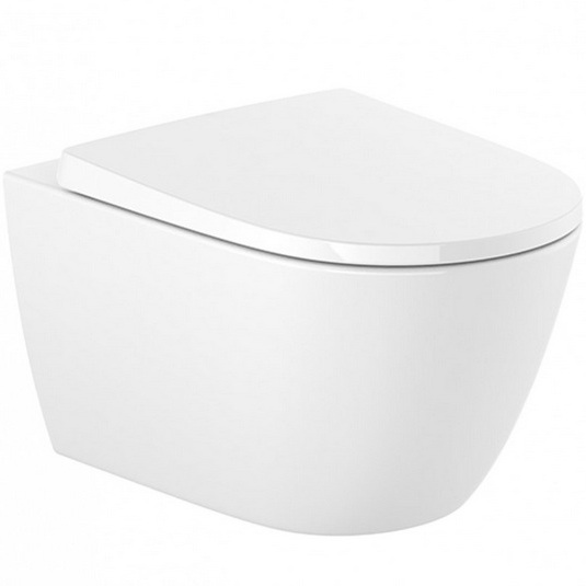 Подвесной компактный унитаз овальной формы с крышкой-сиденьем из супралита с микролифтом.