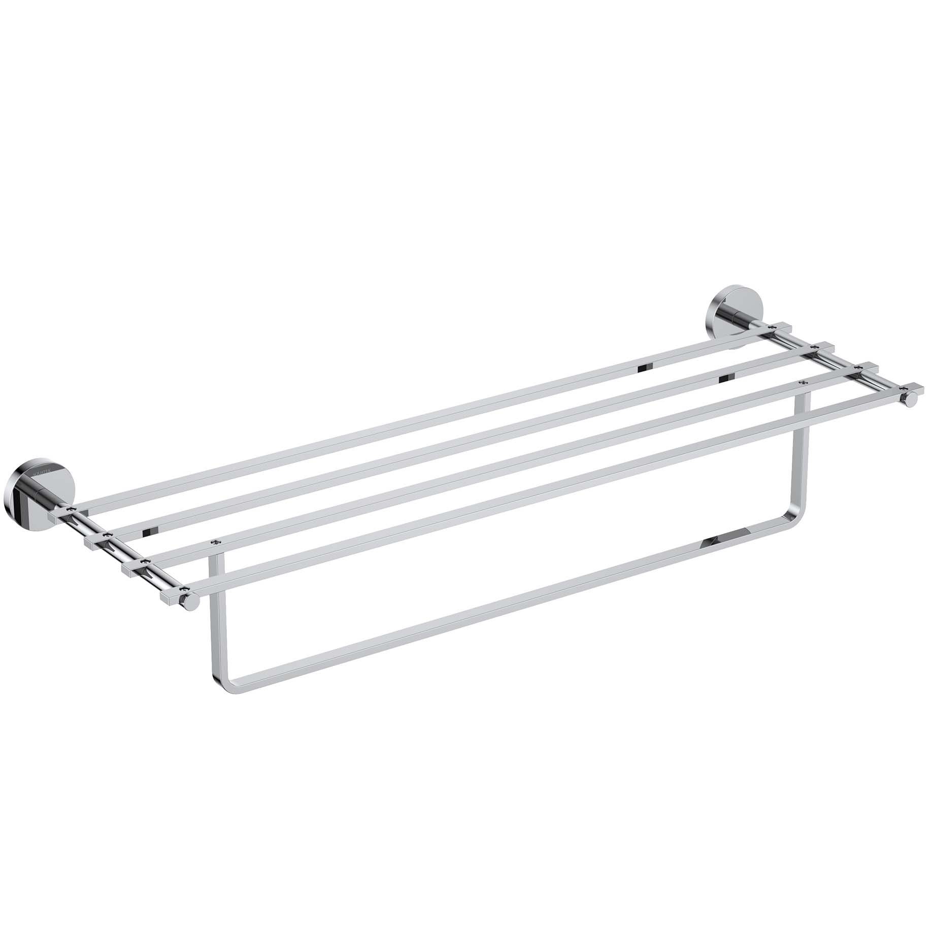 Основной материал: латунь, нержавеющая сталь. Монтаж: на стену. Метод крепления: шурупы. Легкая установка. В комплекте: полка с держателем для полотенец, монтажный комплект.