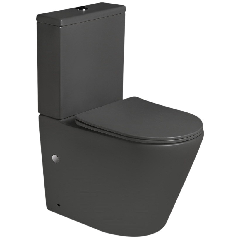 Унитаз напольный безободковый (сиденье микролифт) арматура Geberit. Цвет - серый матовый.